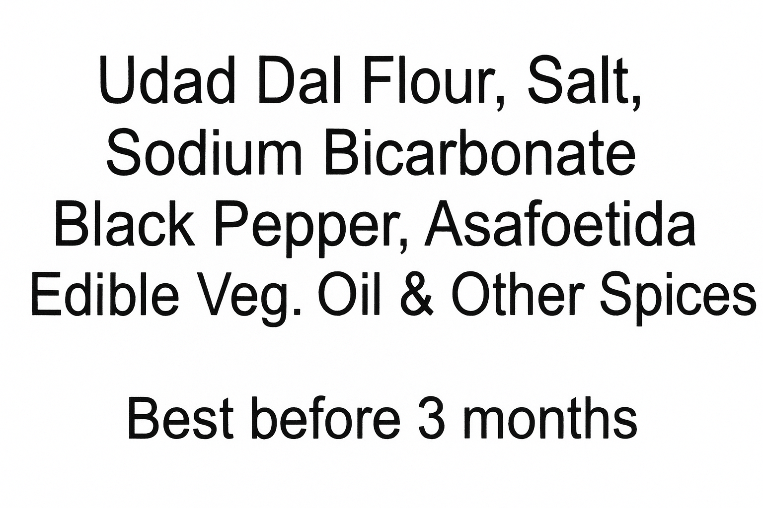 Moongdal and udad dal flour provide a protein-rich, nutty base for the papad, delivering a hearty texture and balanced flavor.